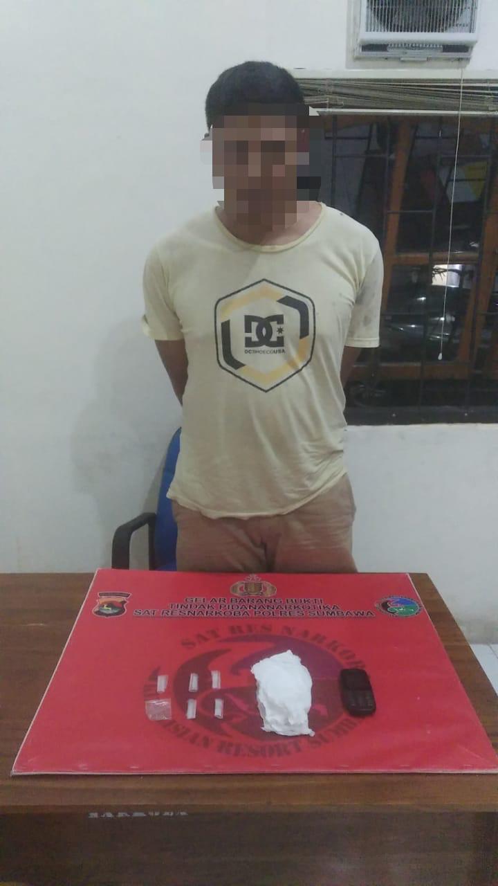 Pria berinisial SP alias Jando (28) diringkus Tim Opsnal Satuan Narkoba Polres Sumbawa.