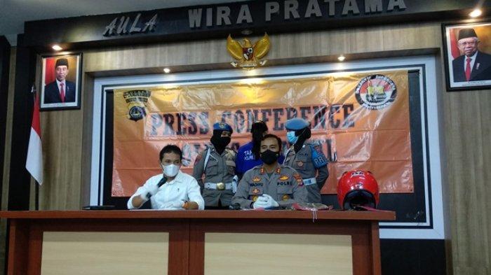 Direskrimum Polda DIY, Kombes Pol Burkhan Rudy Satria (putih), memberikan keterangan terkait kasus sate maut di Mapolres Bantul, Senin (03/05/2021)