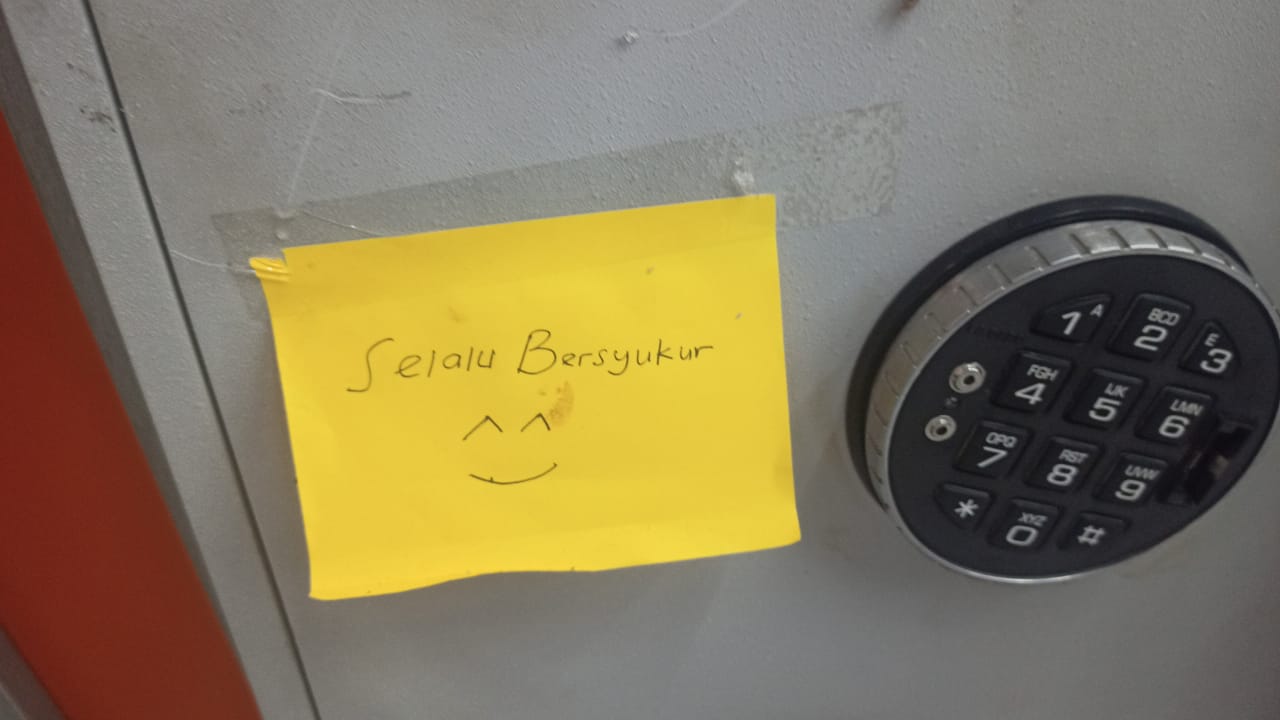 Pesan bernada nasihat itu ditulis pada kertas klip kuning dengan emoji tersenyum.
