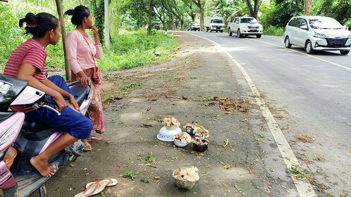 TRIBUNLOMBOK.COM, LOMBOK TENGAH – Tampak jamur liar berjejer di beberapa titik pinggir jalan menuju kawasan Sirkuit Mandalika.