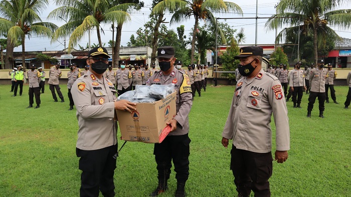 Kapolres Lobar AKBP Wirasto Adi Nugroho, menyerahkan ribuan masker itu kepada seluruh Bhabinkamtibmas