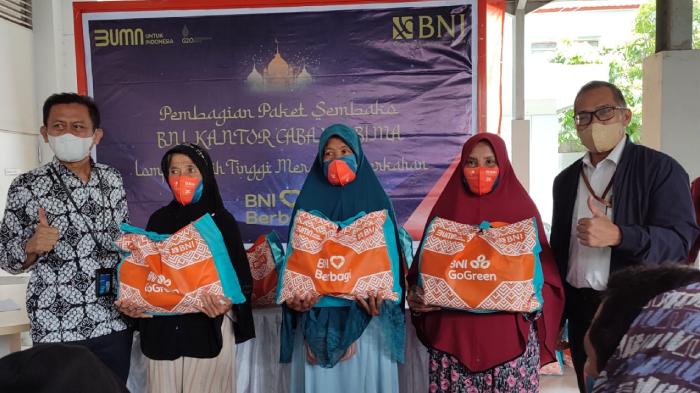 Setidaknya, 650 paket Sembilan Bahan Pokok (Sembako) disebar BNI Bima, Rabu (20/4/2022).