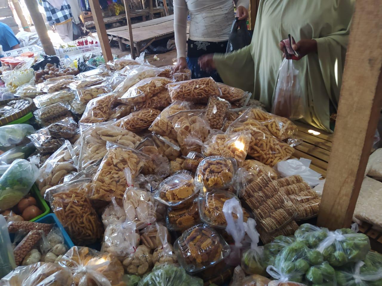 Murni (35) membeli jaje lebaran di salah satu lapak pedangang di pasar Pringgabaya menceritakan tahun ini tidak membuat jaje khas tersebut.