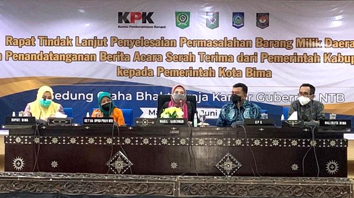 KPK menyaksikan langsung penyerahan aset Pemkab Bima kepada Pemkot Bima tersebut di Gedung Graha Bakti Praja, Mataram, NTB, Kamis (30 6/2022).