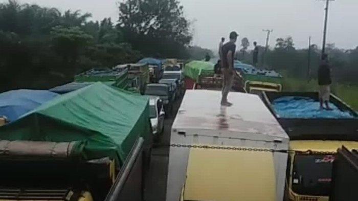 Kemacetan parah terjadi menjelang Simpang Tembesi, Kabupaten Batanghari, Jambi. Tak tanggung-tanggung, kemacetan sudah berlangsung hampir 22 jam.