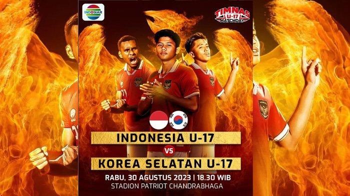 Timnas U-17 Matchday 2023 antara Timnas Indonesia vs Korea Selatan digelar pada Rabu 30 Agustus 2023 pukul 19.00 WIB dan bisa ditonton lewat Live Streaming TV Online Indosiar.