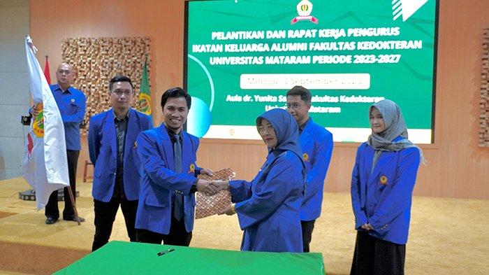 TRIBUNLOMBOK.COM, MATARAM - Pelantikan dan Rapat Kerja Pengurus Ikatan Keluarga Alumni (IKA) Fakultas Kedokteran (FK) Universitas Mataram (Unram) periode 2023-2027 di Auditorium Dr. Yunita Sabrina, FK Universitas Mataram digelar, Minggu (03/09/2023).