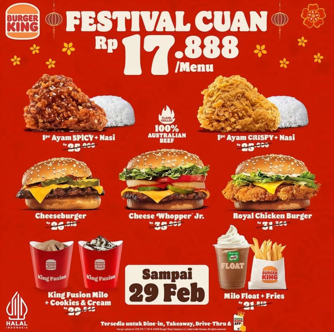 Ada 54 promo dan diskon khusus Pemilu 2024 pada hari ini Rabu 14 Februari 2024, dari Mixue, Chatime hingga Burger King, syarat dan ketentuan berlaku.