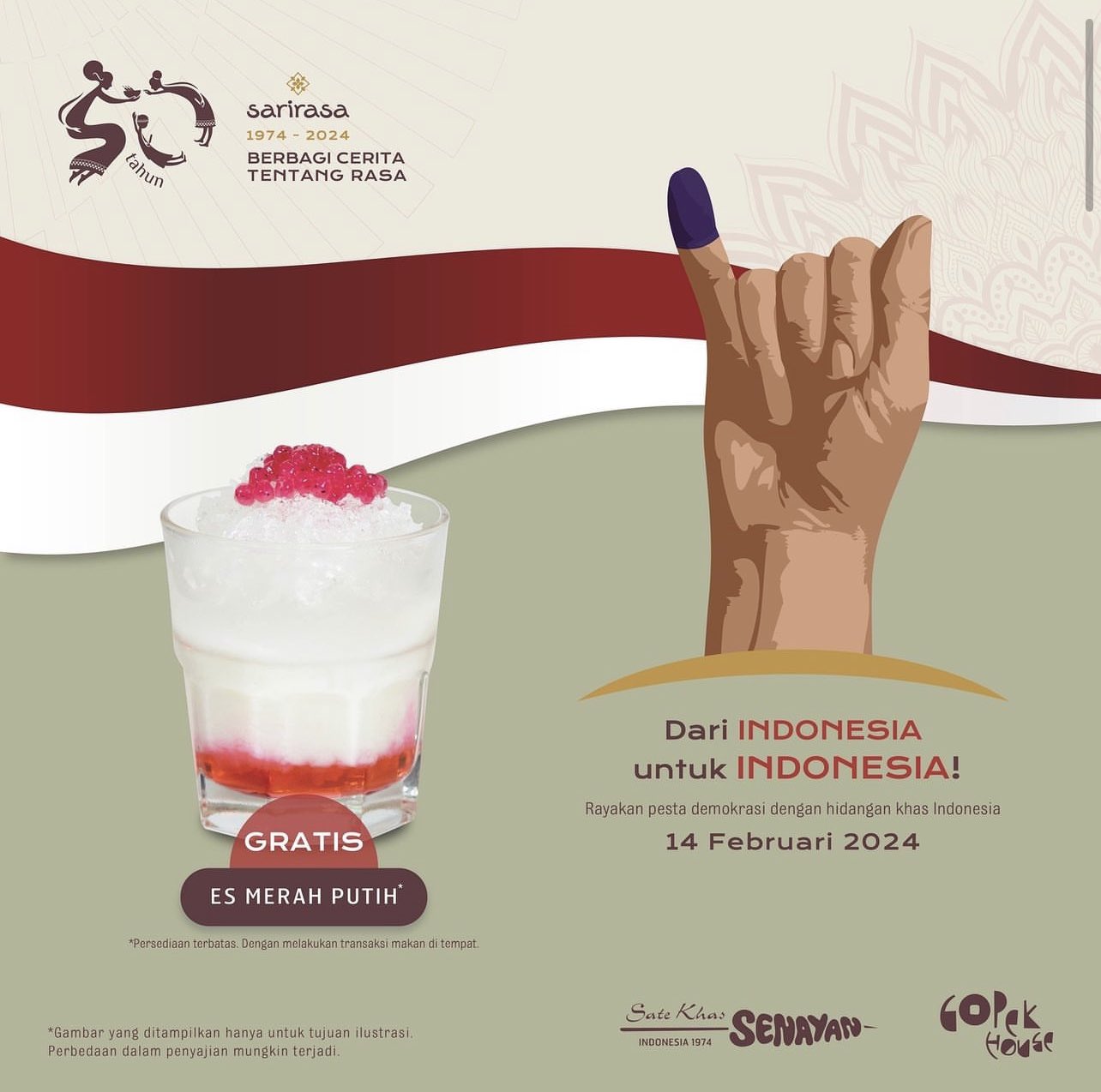 Perlu diketahui, promo dan diskon Pemilu 2024 ini berlaku pada hari ini Rabu 14 Februari 2024.
