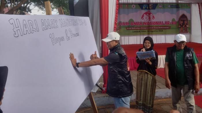 Penjabat (Pj) Bupati Lotim, HM Juaini Taofik mengapresiasi perayaan Hari Anak Nasional yang di gelar Pemda bersama ratusan anak yang hadir.