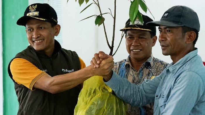 Kunjungannya itu merupakan janji bupati kepada warga desa untuk menikmati kopi dan memberikan sumbangan tanaman pohon.